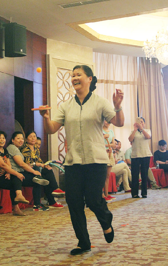 踩气球比赛规则为混战模式,场面可谓是群雄逐鹿,异常火爆,八位勇士或动如狡兔,或不动如山,也有合纵连横的战术运用。最终房务保安代表队夺冠问鼎。