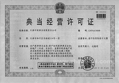 天津乐鱼网页版登录入口典当有限责任公司申办成功