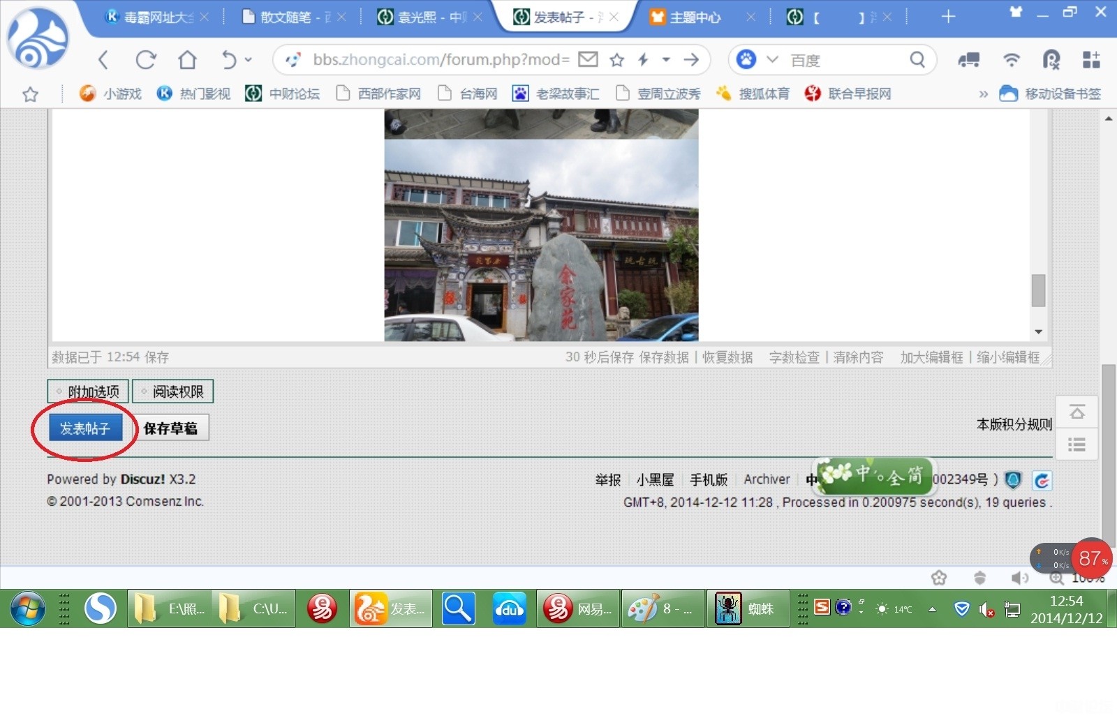 7、图片全部上传完成且文字编辑完成后。点击“发表帖子”按钮。