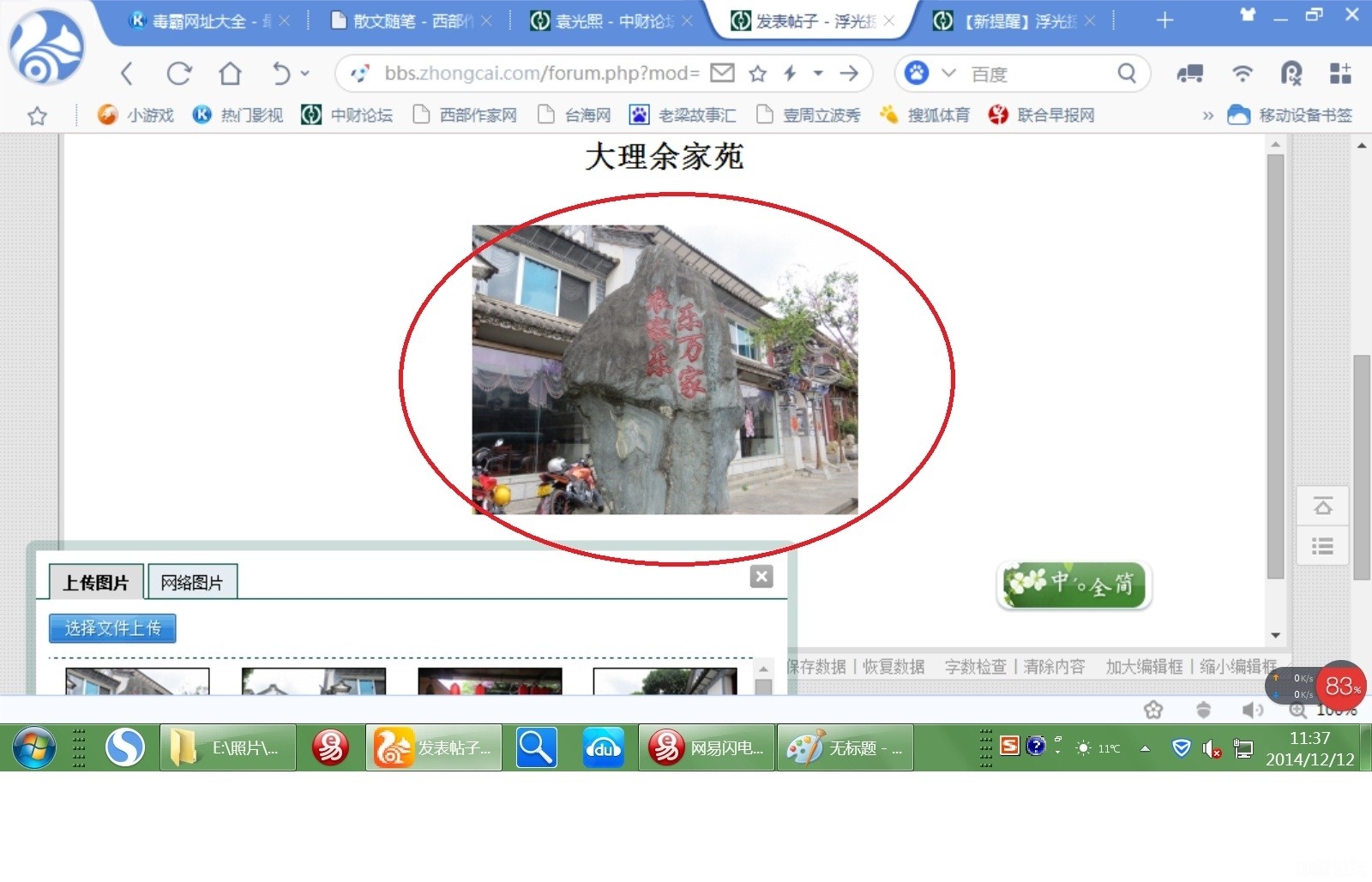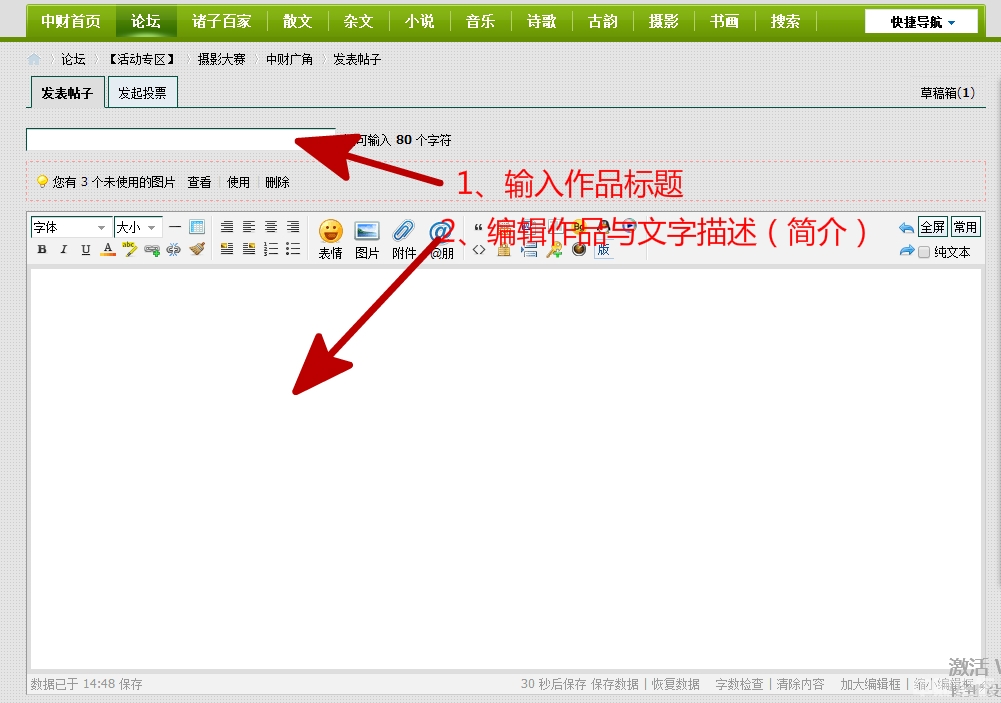 (3)上传摄影作品具体图解:1、点击“图片”按钮