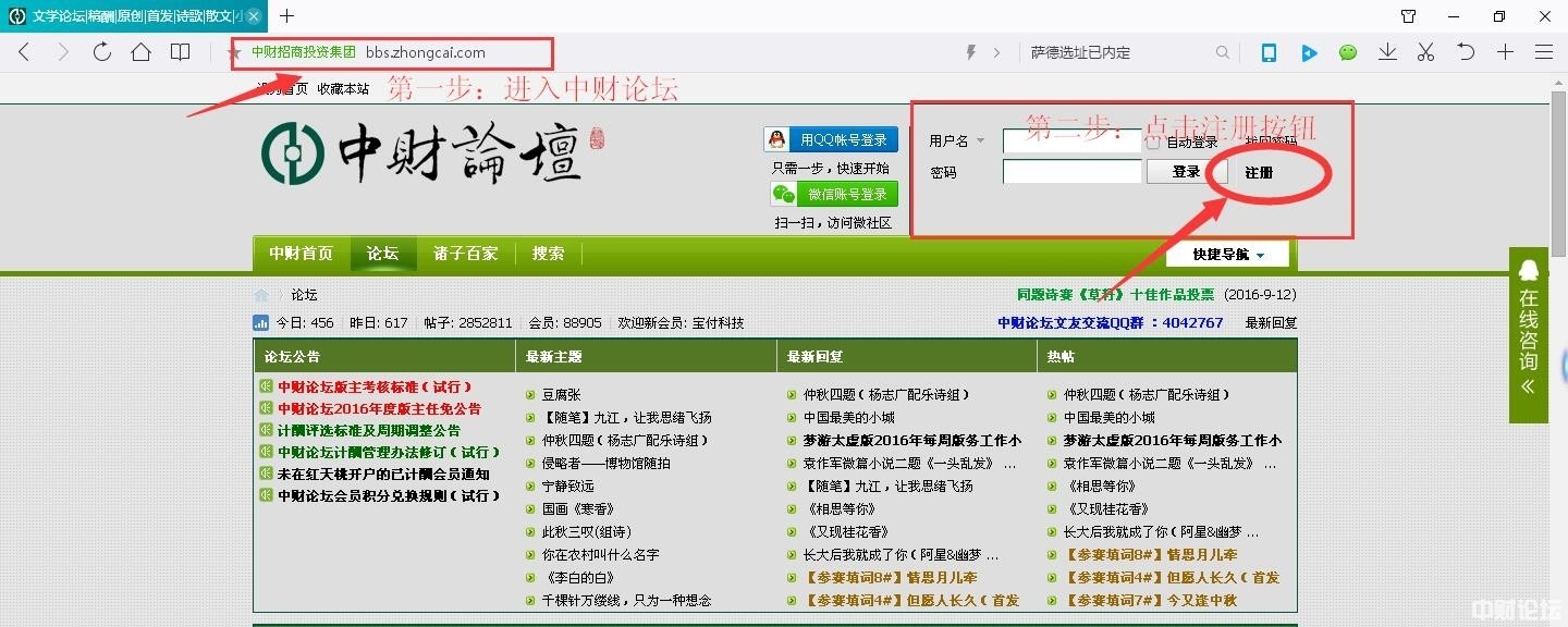 (1)登陆乐鱼网页版登录入口论坛bbs.zhongcai.com ,在乐鱼(中国)的右上角找到“注册”,按步骤完成注册。