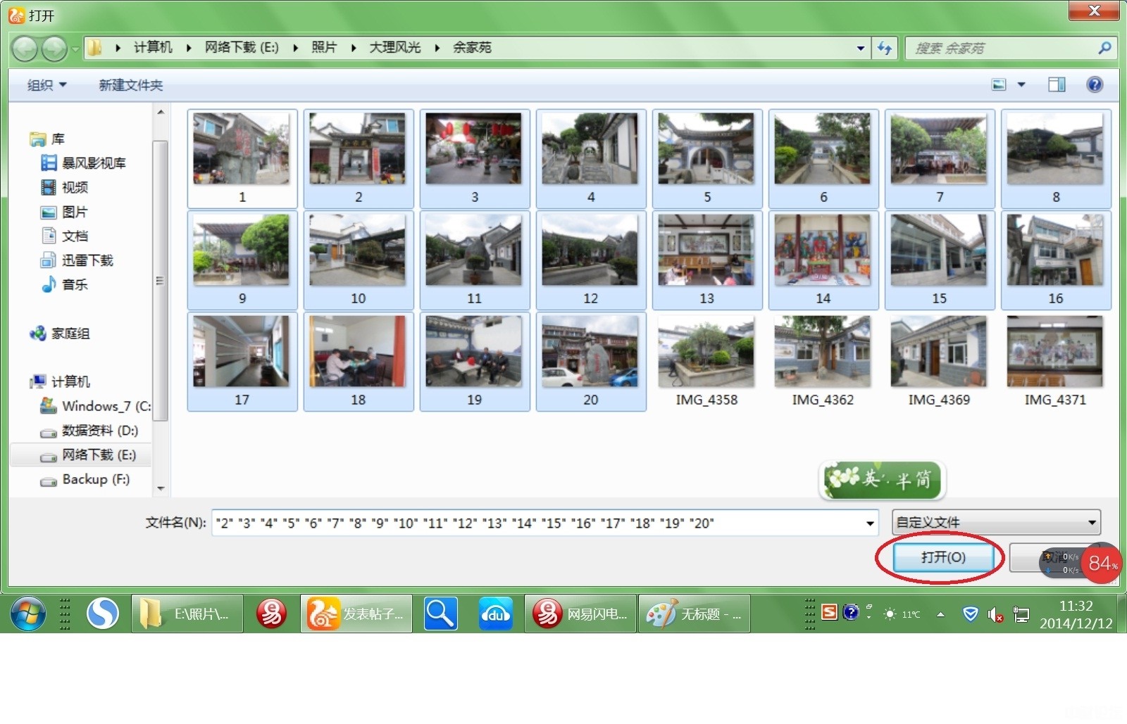 3、在“打开”对话框中,找到要上传的图片。选中图片后,点击“打开“按钮。