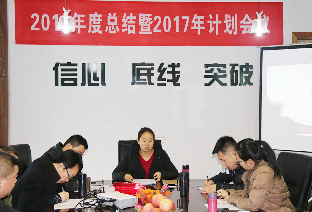 会议于9:00准时开始。首先由全体员工按照2016年部门业绩、个人业绩依次进行工作总结,总结自己在2016年的工作得失,并对2017年的工作进行了规划,制定出部门及个人业绩计划。
