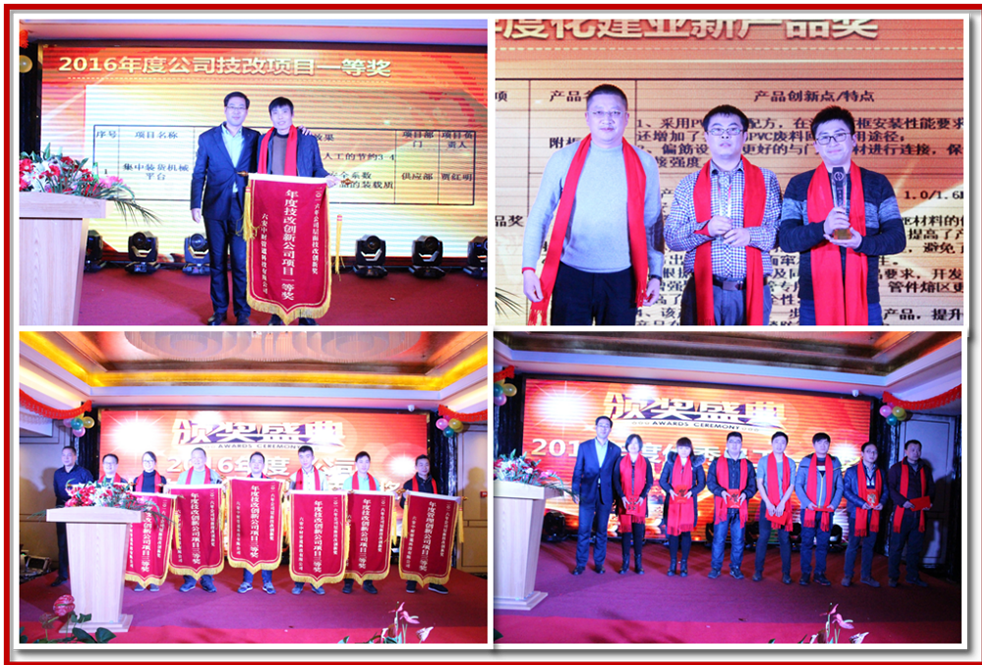 颁奖环节将整场晚会推入高潮。2016年度共评选出3个先进集体、56名先进员工、24个优秀项目,5个化建业获奖项目。公司领导班子与邀请嘉宾为获奖员工及项目代表颁奖,希望在新的一年里,先进代表们继续发扬模范带头作用,积极主动,勇于突破,推动公司经营管理再上新台阶。