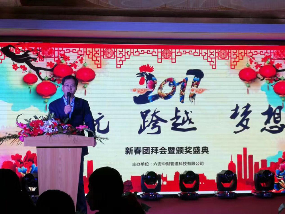 乐鱼网页版登录入口讯 红日升空辉大道,金鸡报晓促长征。六安乐鱼网页版登录入口新春团拜会暨年终先进表彰大会于1月18日17时28分在六安永泰大酒店隆重举行。合肥广角首席执行官王总及其经营团队、化建业长江总部(管道)首席执行官张清先生及其经营团队、化建业长江总部(型材)、江苏总部的主要营销机构负责人、六安基地领导班子与230余名员工欢聚一堂,共迎新春。
