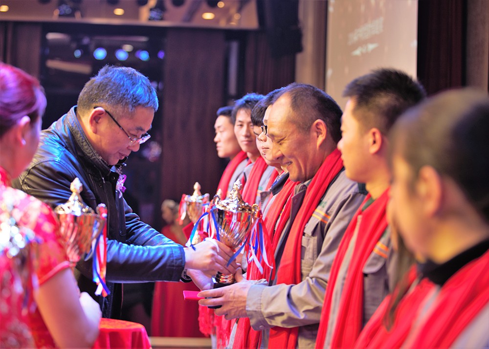 颁奖环节将整台晚会推向高潮,化建执行总裁李玉根先生及下沙基地经营班子为下沙基地55位爱岗敬业、无私奉献的先进员工进行了颁奖表彰。公司领导鼓励他们创赢新一年,并号召全体员工以他们为标杆和榜样,为公司的发展贡献力量。