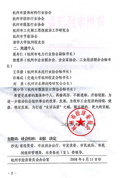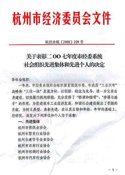 喜讯:杭州市担保业协会被评为07年度市经委系统社会组织先进集体