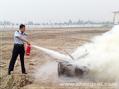 指导完毕后,消防班长用标准的灭火动作进行现场演示。
