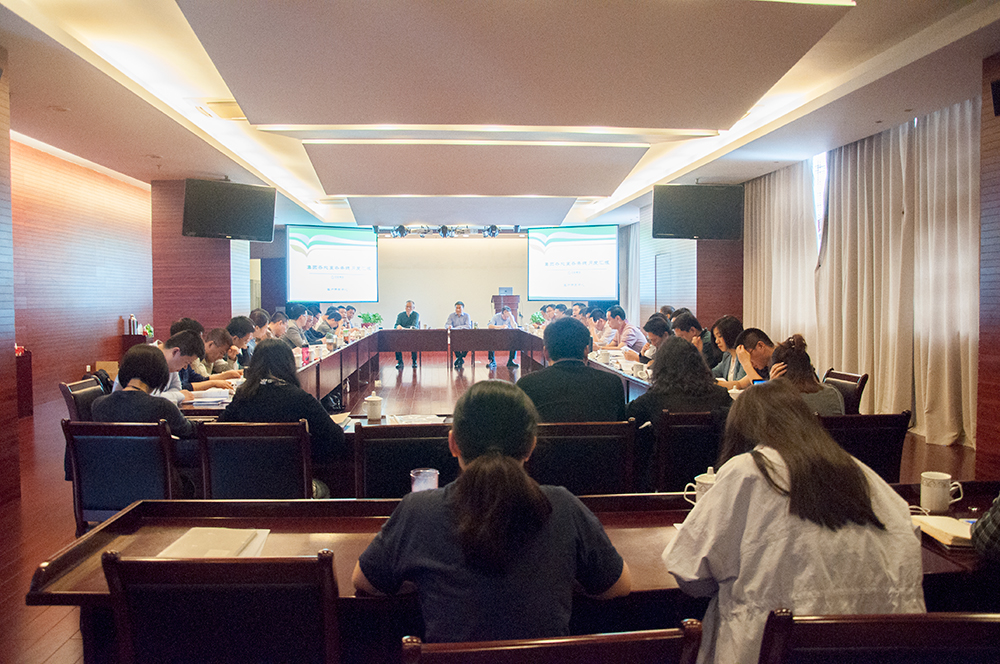 接着,集团三处室二中心分别就各条线工作推进执行情况及要点做了PPT展示和说明,并对具体的事务展开讨论。