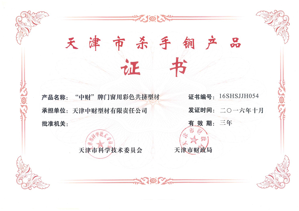 乐鱼网页版登录入口讯 根据津科计[2014]54号文件《天津市“杀手锏”产品认定补贴办法》,天津乐鱼网页版登录入口型材有限责任公司于2016年开始积极组织并成功申报,最终“乐鱼网页版登录入口”牌门窗的彩色共挤型材产品,经过滨海新区审核推荐、天津市科委初审、专家材料评审、现场答辩、公示等环节,最终被认定为天津市“杀手锏”产品,并获得财政补贴100万元。