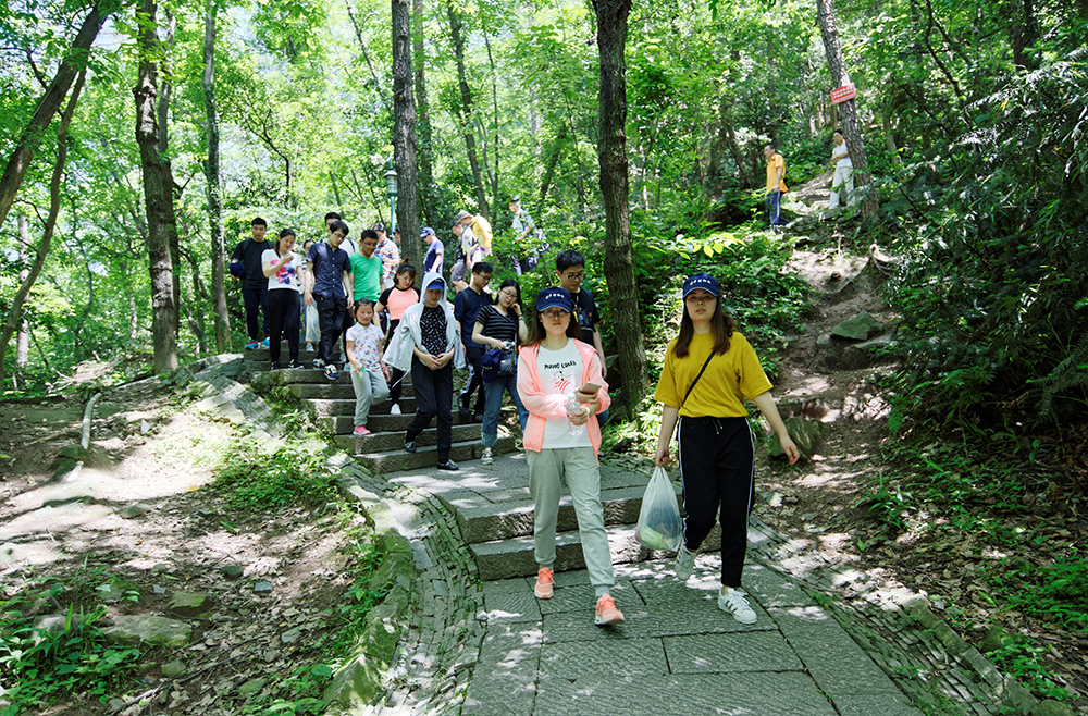 从总部出发的队伍到地铁龙翔桥站与大部队汇合并合影留念后,大家带着印有“乐鱼网页版登录入口论坛”字样的遮阳帽,畅行西湖畔,沿北山街边走边聊,直到宝石山下,开始了登山旅程。