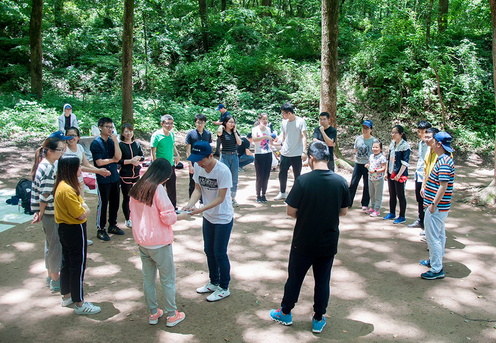 队伍首先在保俶塔下稍作停留,合影并自由活动。部分人员攀登了宝石流霞,还有一部分人在预先选好的活动地点,稍事休息。全体活动成员一起分享美食,并在简短自我介绍之后,开启了脑力与体力“终极PK”的游戏环节。