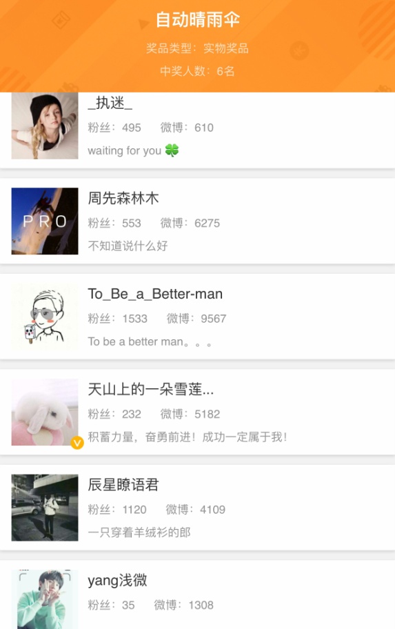 6月2日晚21:20,由@微博抽奖平台系统自动抽取6名获奖者,抽奖结果名单如下: