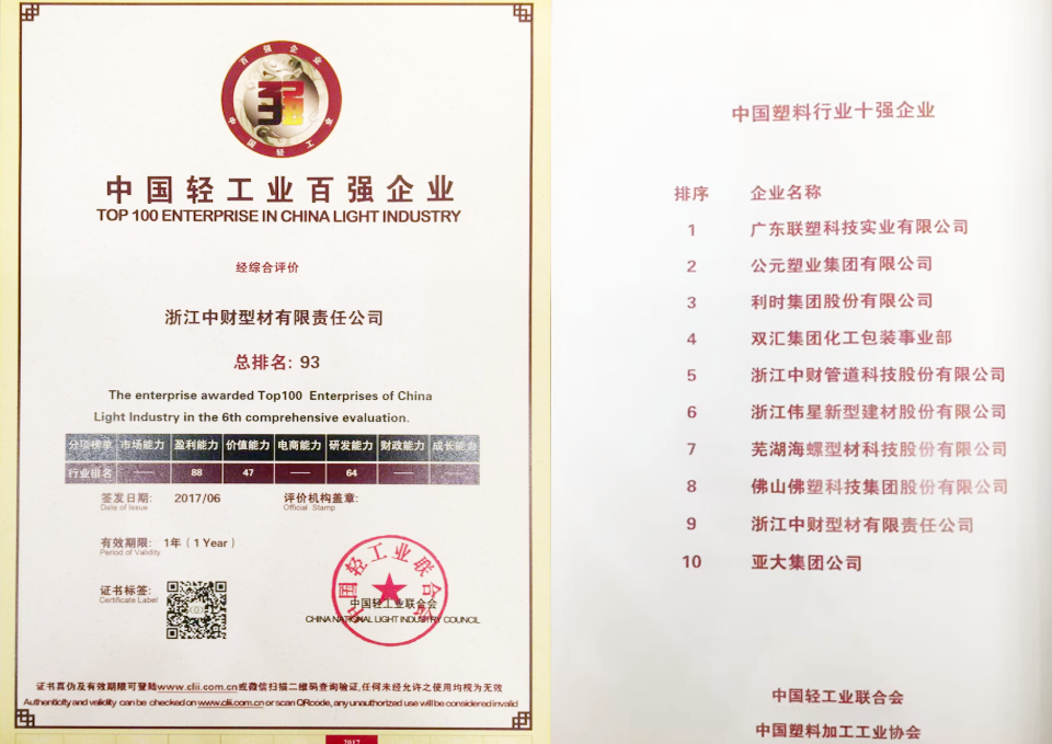 乐鱼网页版登录入口型材再获“中国轻工业百强企业”及塑料行业十强企业称号