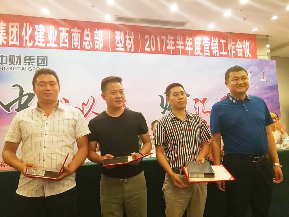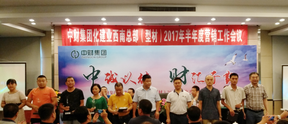 紧接着部分优秀营销机构分享了他们的市场操作经验和发展历程。随后进行最激动人心的颁奖环节,由西南总部(型材)陈亮先生对2017年半年度差异化产品贡献奖获得者进行了颁奖,集团总裁(化建)李玉根先生对上半年的优秀机构进行了表彰颁奖并合影留念。