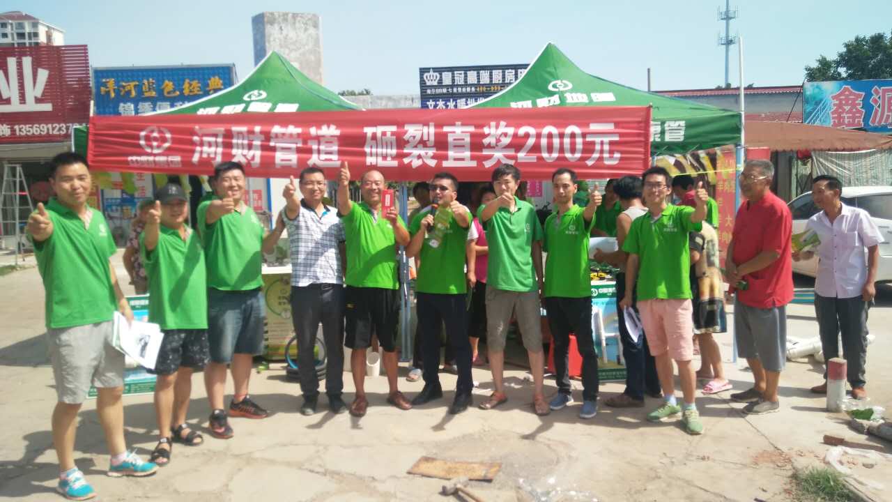 随后的7月8日-10日三天时间拉练队伍成员不惧40℃的炎热酷暑,在温县乡镇组织了7场产品宣传的砸管件活动。每一场活动在当地都引起巨大反响,并得到当地百姓的称赞和好评,河财管道的知名度得到了迅速提升。