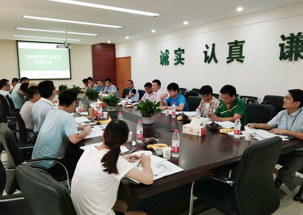 会议围绕着市政管道产品的服务提升、市场情况分析与产销分析、定发货流程优化、大型管道集采项目的供货服务等议题展开讨论,同时针对市政产品目前供货与服务存在的问题与会人员畅所欲言、献计献策,商讨应对措施。29日下午由各基地技术人员讲解培训市政产品。
