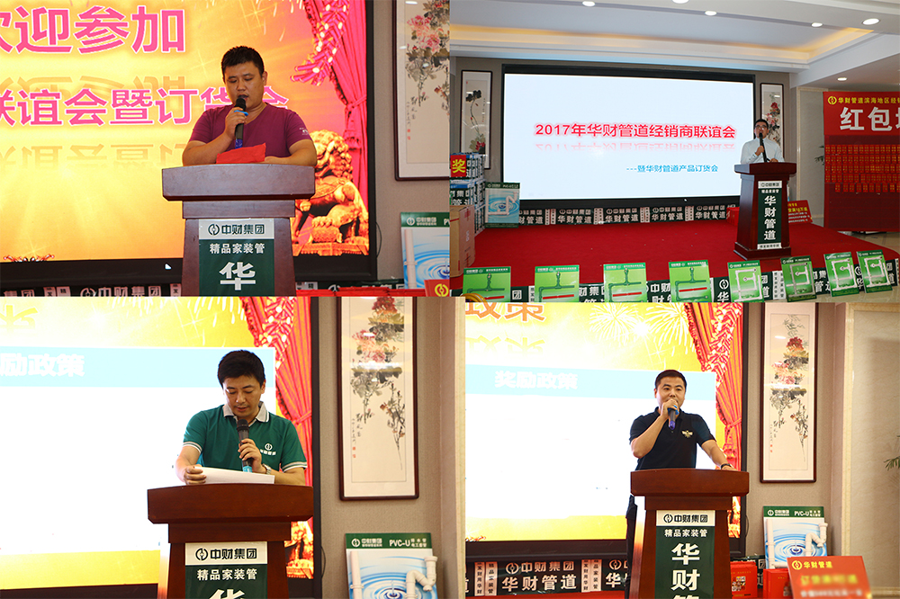 订货会现场,向滨海地区经销商展示了公司PVC、PP-R以及家装精品等多系列管道产品,显示了公司强大的生产实力。在本次联谊暨订货会上,滨阜响办事处黄仲经理着力向广大经销商推介了我公司PP-R以及精品家装管道产品。夏总在联谊会上鼓励各经销商在激烈的市场竞争面前,双方合作双赢,做强做大,与华财共发展。