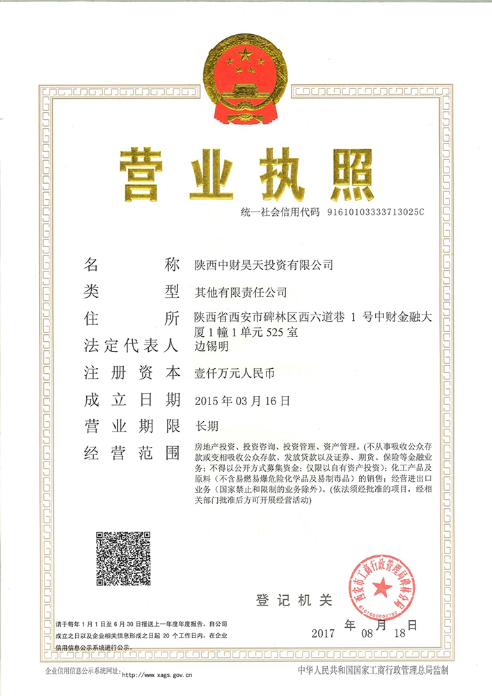 乐鱼网页版登录入口讯 8月18日,在乐鱼网页版登录入口集团和乐鱼网页版登录入口生生资本的大力支持下,“陕西乐鱼网页版登录入口昊天商业运营管理有限公司”更名为“陕西乐鱼网页版登录入口昊天投资有限公司”,在西安市工商局完成公司名称变更登记并于当日取得“三证合一”营业执照。