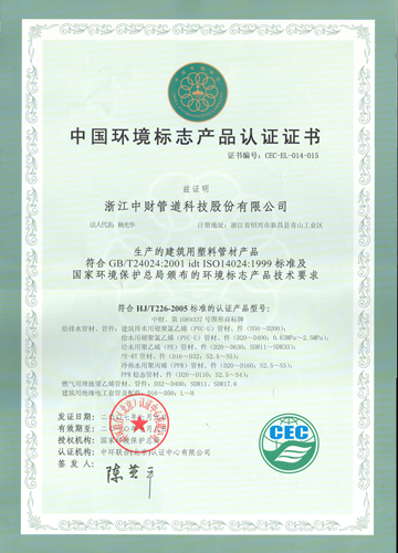 其中,管道证书编号为:CEC-EL-014-015;型材证书编号为:CEC-EL-032-005。