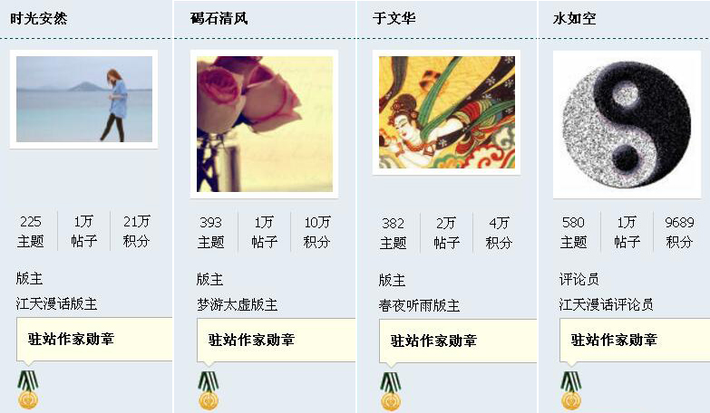 经会员申请及论坛审核,首批乐鱼网页版登录入口论坛驻站作家名单已经公布,时光安然等四名会员获此荣誉。