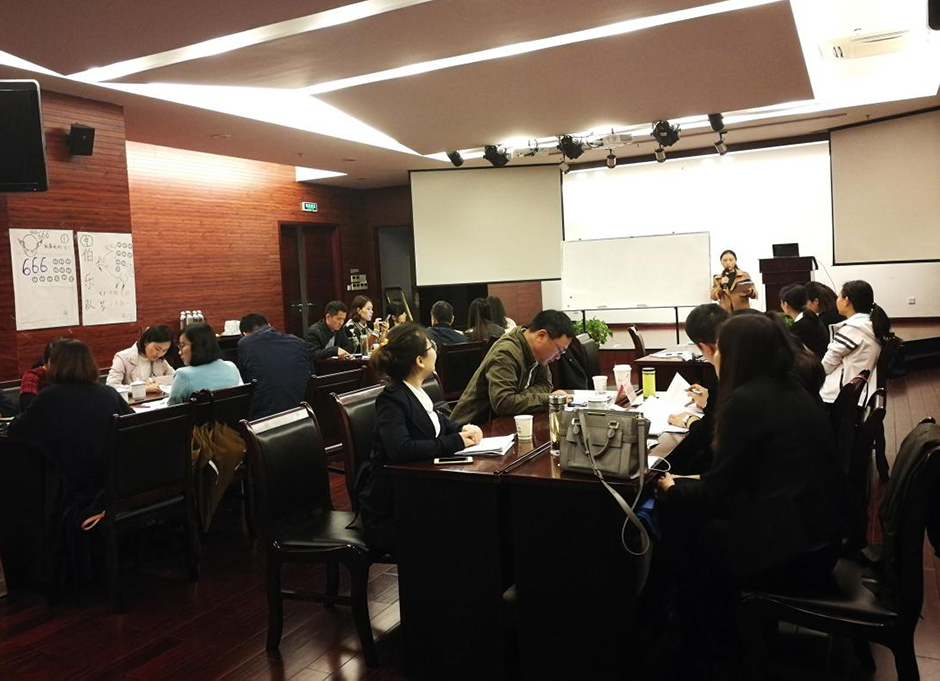 下午客户开发中心张科长对营销组织推进图进行了详细的分析与讲解。紧接着,张科长就“2+2+2”新人育成体系的相关内容进行重点剖析。随后,以小组为单位,讨论 “2+2+2”新人训练推进的想法和思路,并逐一发布小组设计的“2+2+2”新人训练技能看板。