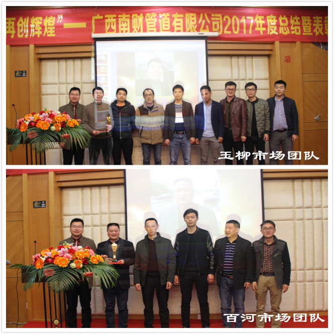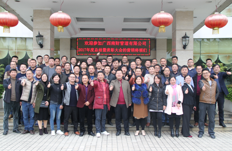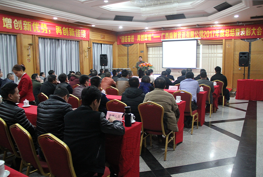 乐鱼网页版登录入口讯 1月15日,广西南财管道有限公司2017年度总结暨表彰大会在平果铝宾馆隆重举行。会议认真总结了2017年取得的各项成绩、对2018年的规划进行说明,同时表彰2017年度为公司发展作出突出贡献的“优秀营销团队”和“优秀业务员”代表。会场内充满了喜庆的气氛,洋溢着南财人火热的激情。