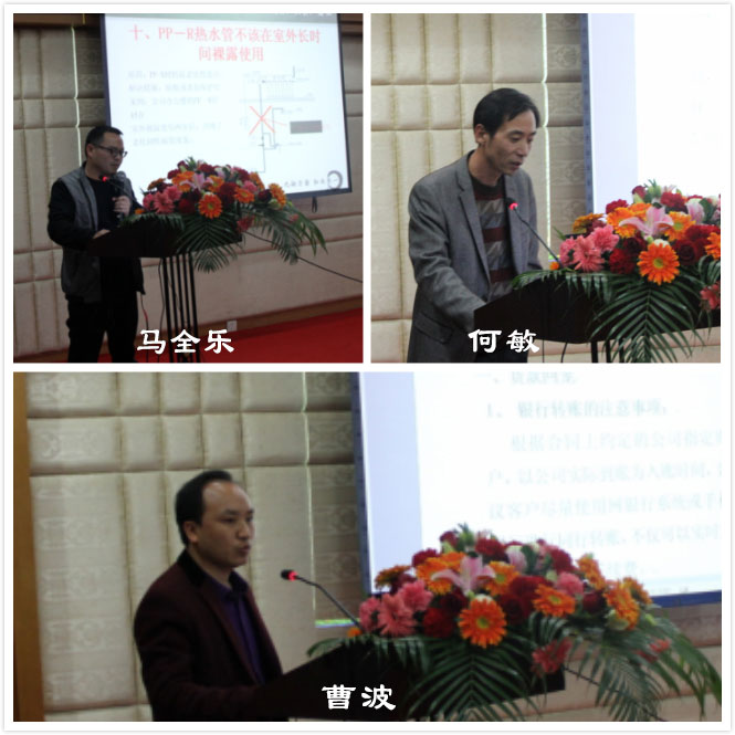 大会首先由质管部负责人马全乐、供应部负责人何敏、财务部经理曹波分别就产品知识、发货流程和财务知识进行了培训,让大家进一步加深了对相关业务知识的认知。