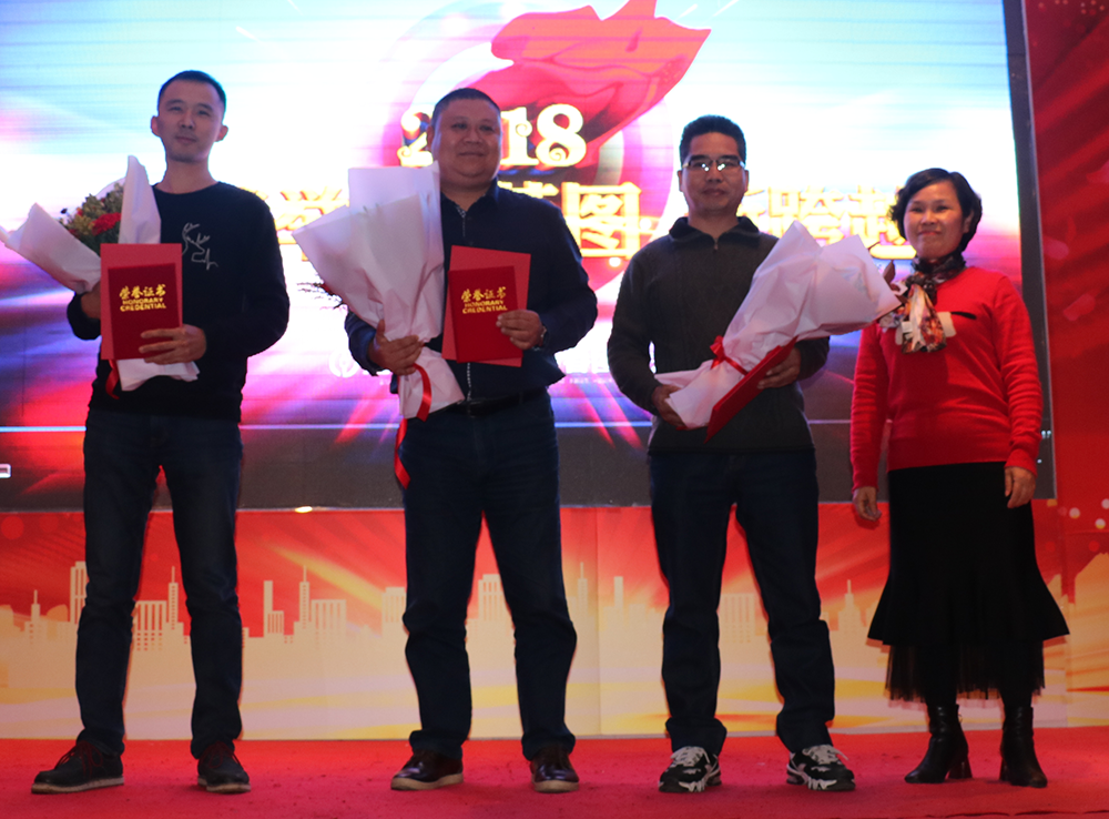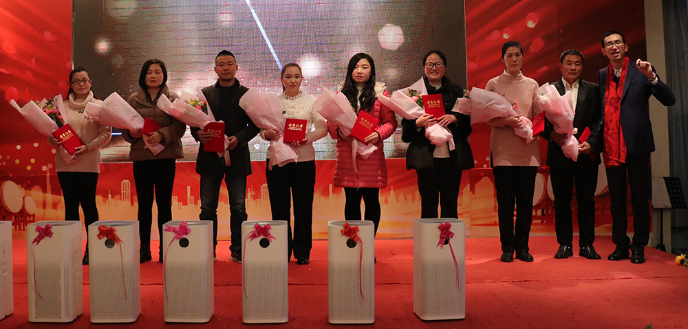 颁奖环节,根据2017年销售和内部分为突出贡献奖、优秀员工奖、优秀团队奖、最佳新人奖四个奖项。裘总、孙总对获奖人员和团队进行了颁奖,感谢他们一年来的兢兢业业和辛勤付出,期待来年他们取得更好佳绩。