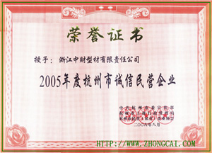 浙江乐鱼网页版登录入口型材荣获05年度市“诚信民营企业”称号