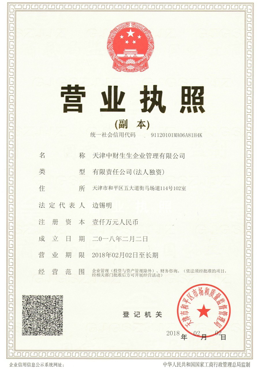 乐鱼网页版登录入口讯 在集团领导的大力支持和相关部门的通力配合下,乐鱼网页版登录入口生生资本之一线机构天津乐鱼网页版登录入口生生企业管理有限公司正式领取营业执照。