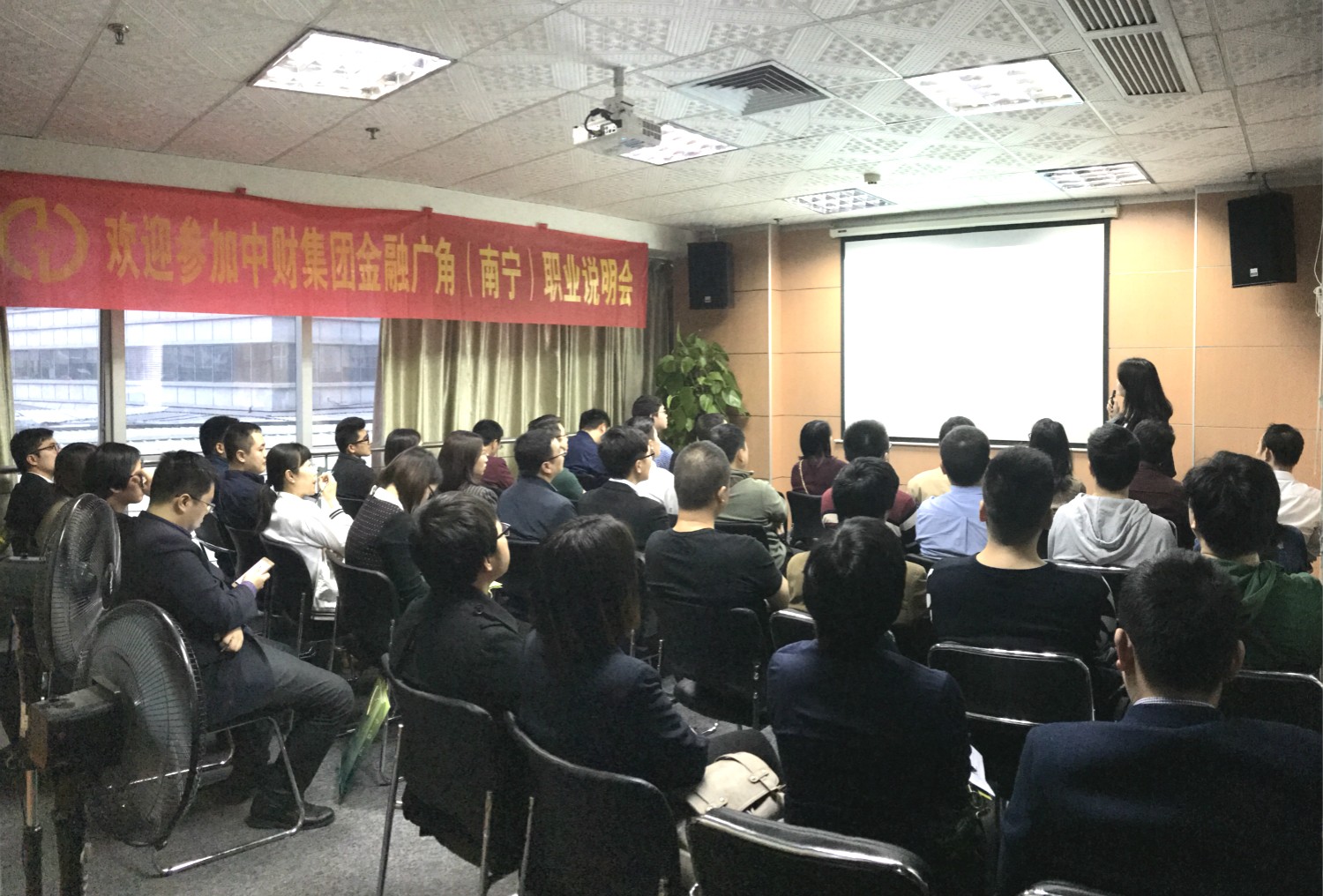 乐鱼网页版登录入口讯 3月15日晚,南宁广角2018年首场大型职业说明会在广角会议室顺利召开。本次职业说明会邀请了金融界内精英50余人参加,会议由办公室王主任主持,集团客户开发中心张科长主讲。
