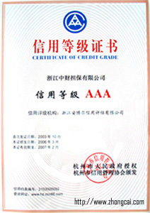 乐鱼网页版登录入口时讯:浙江乐鱼网页版登录入口担保被评为05年度担保机构AAA级企业