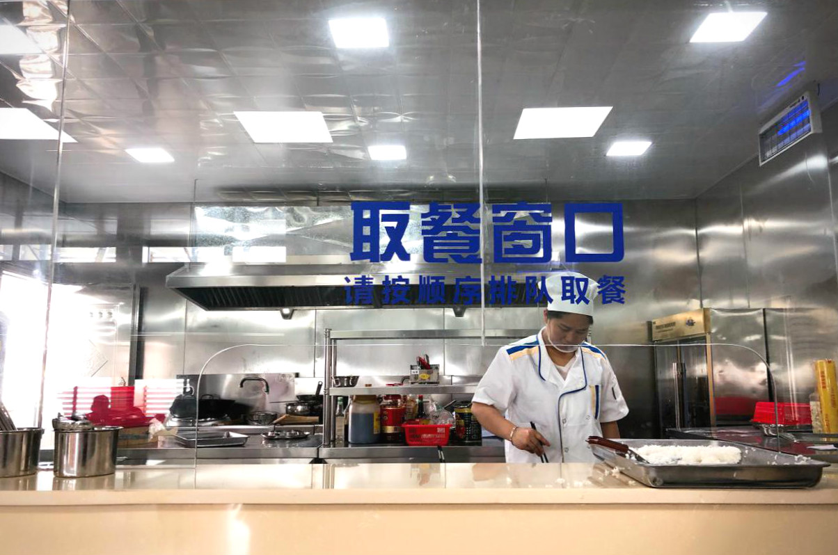 武汉广角食堂构建至广角13楼,增设桌椅13套,10人位单间一个,可同时容纳62人进餐,并添置了紫外线消毒柜、保洁柜、冰箱等设施。此外,食堂为就餐人员提供餐具,并在餐后统一清洗、消毒,保证了用餐的卫生及安全。菜单、菜价、注意事项等均能够在公示牌上得以体现。