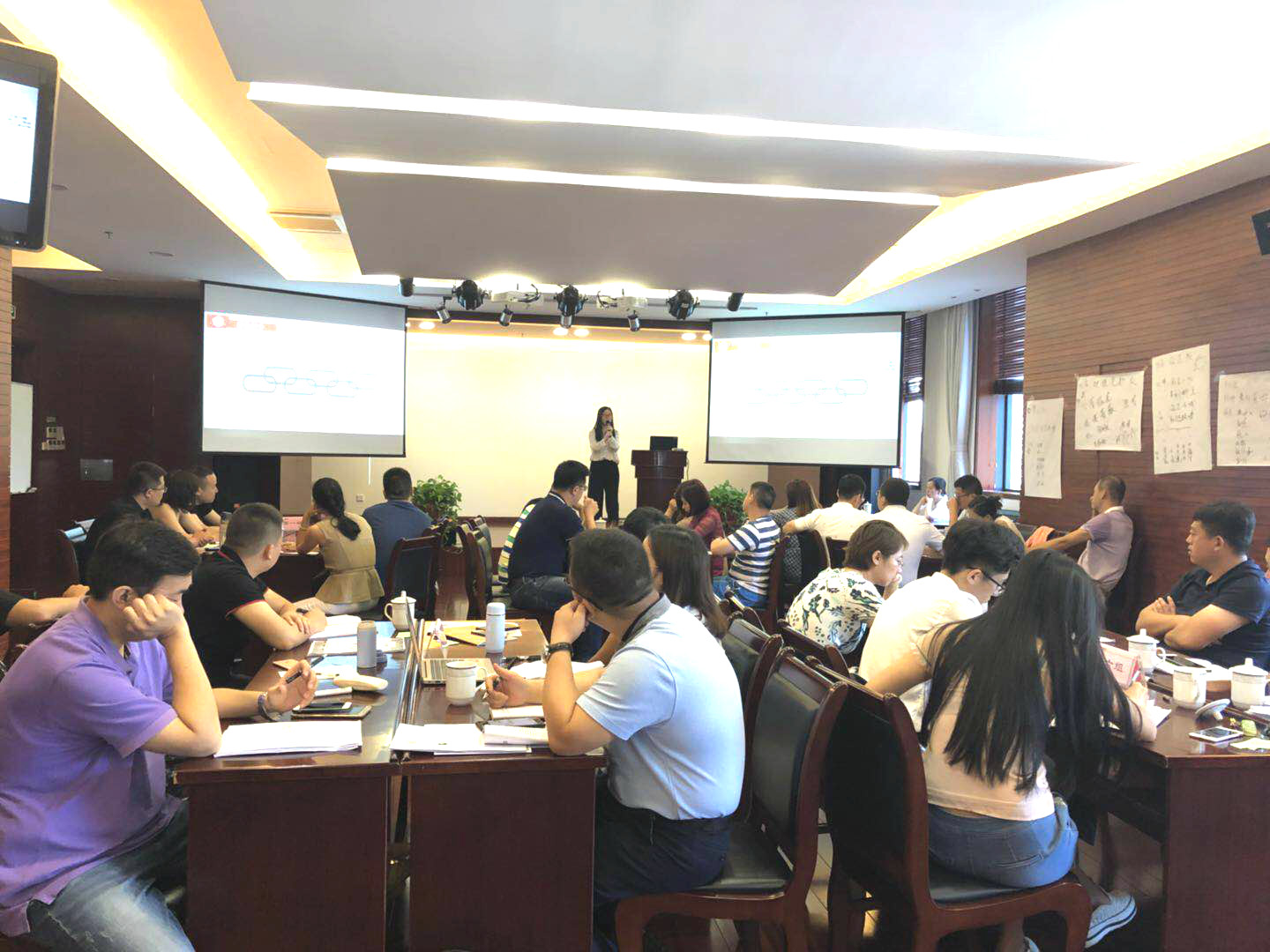 之后,继续由演科长讲解了《上市公司及房地产业务合作模式》,针对上市公司和房地产企业与我司可合作项目进行深入的解析,对于各类业务的操作模式和专业知识讲解细腻,过程中学员认真学习,积极互动提问,课后仍然围绕问题热烈讨论。