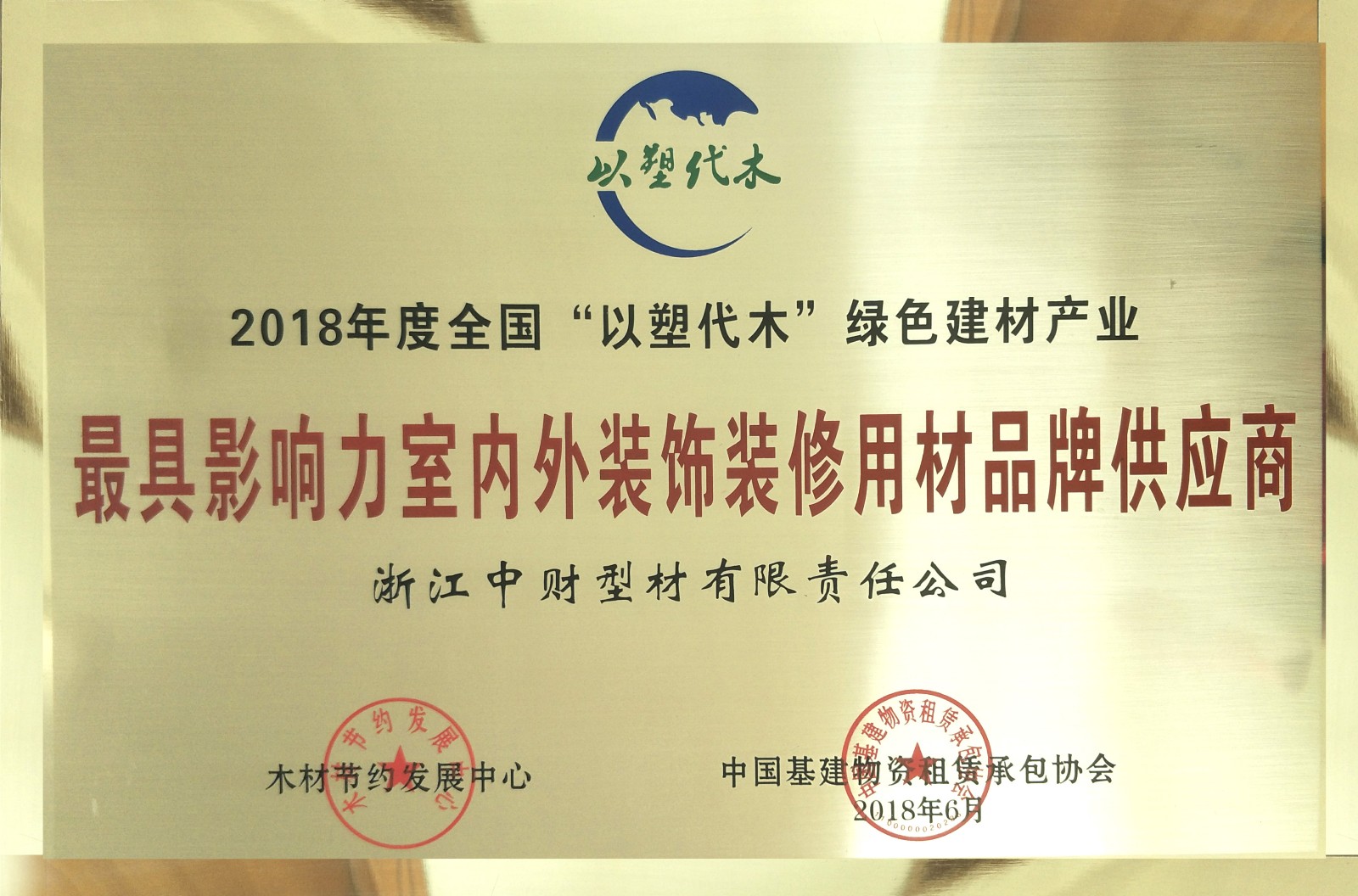 乐鱼网页版登录入口讯 2018年6月,第五届全国塑木绿色建材工作会议暨绿色建材创新发展高端论坛在南昌隆重召开,与会期间,浙江乐鱼网页版登录入口型材被授予“最具影响力室内外装饰装修用材品牌供应商”荣誉称号。