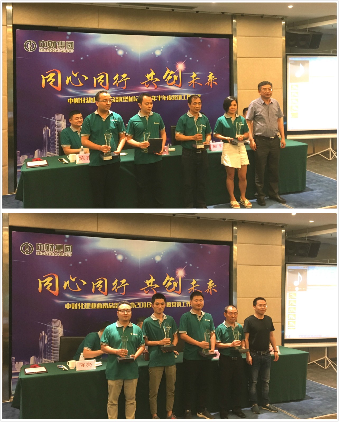 随后由营销管理处处长鞠广军先生和化建业执行总裁李玉根先生对上半年的优秀机构进行了表彰颁奖并合影留恋。