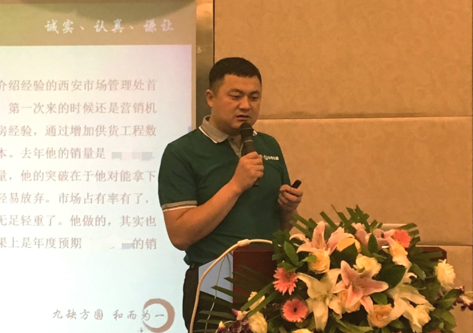 紧接着优秀机构代表资阳型材代表处李果、黔南型材销售中心竺晓东、忠县型材代表处陈施蓉分享了他们的市场操作经验和发展历程,优秀机构的冲天霸气及必胜信心让与会人员深受鼓舞。