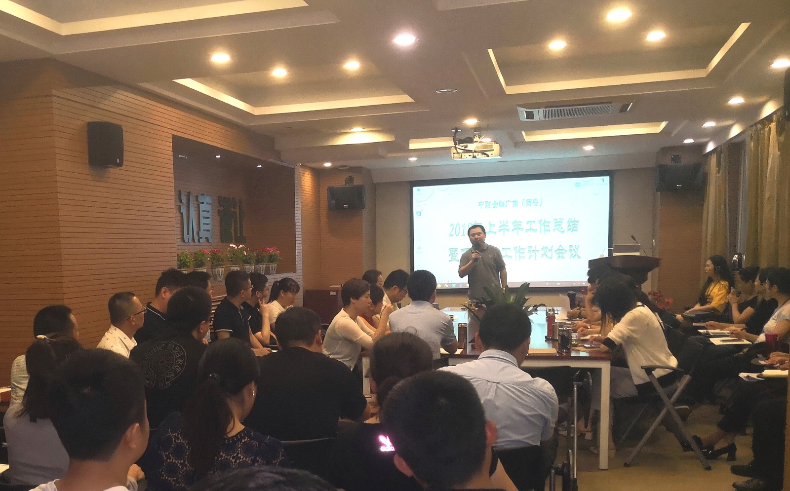 随后,广角首席执行官易总简要回顾了广角上半年营销收入及工作情况,并从经营目标、机构市场、团队文化、管理机制四大板块对下半年工作做出部署。易总谈到:上半年广角虽取得了一些成绩,但也隐藏着瑕疵,下半年在客户、市场、目标方面要追求“精准”,同时在文化、团队、用人方面讲求“互信”。