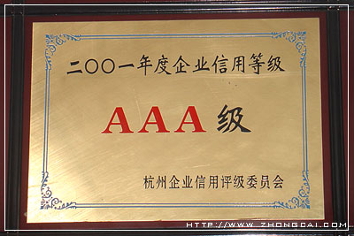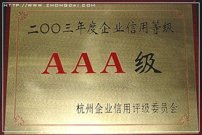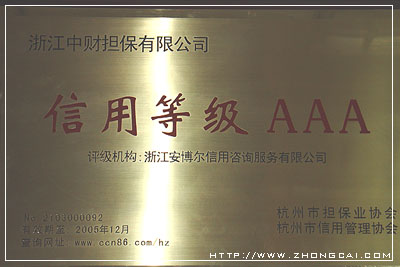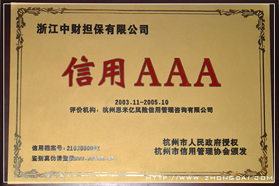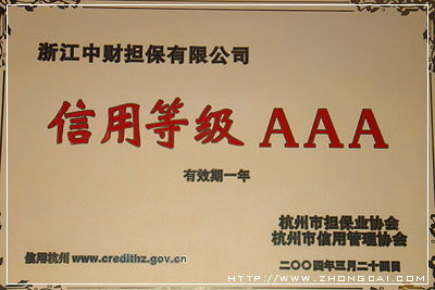 营业至今,公司连续四年被杭州市企业信用评级委员会评为企业信用等级AAA级最高荣誉;2003年被评为杭州市首批信用优质企业AAA级企业;多次被杭州市担保协会、杭州市人民政府授权的杭州市信用管理协会评为AAA级企业;连续两年减免担保水利建设专项资金;连续三次获杭州市财政局年度信用担保机构以奖代补专项扶持基金。公司为杭州市担保业协会会员单位,总经理郑文兵现任杭州市担保业协会会长及杭州市信用协会副会长。