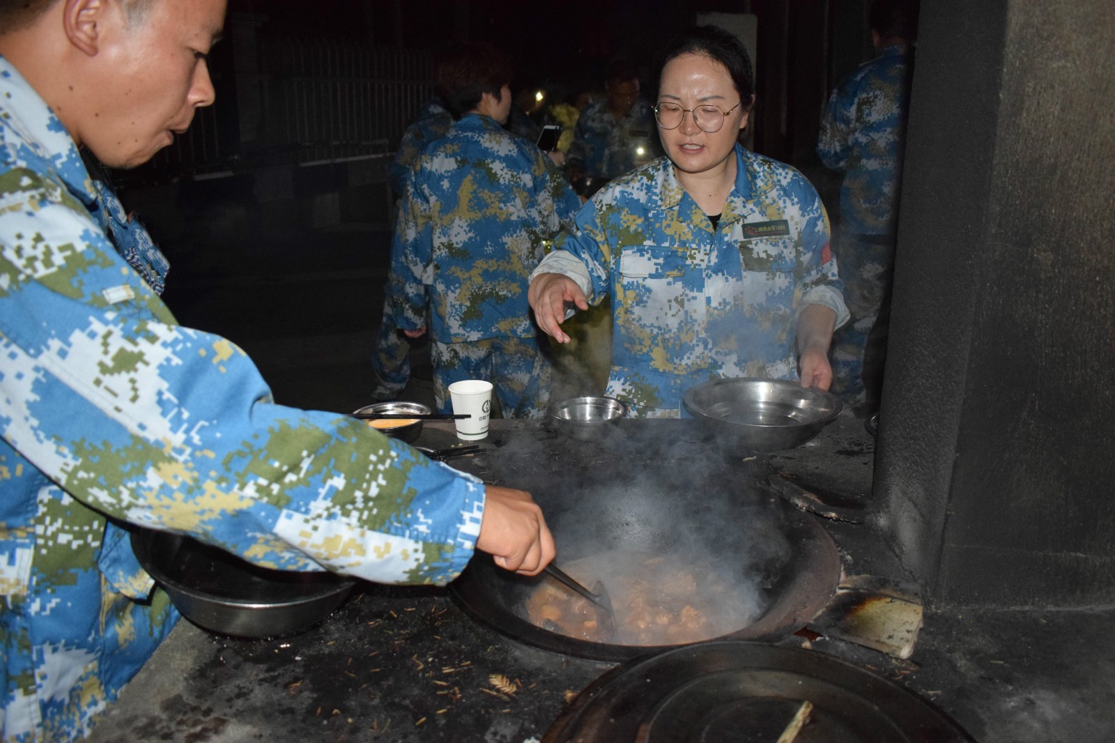 战地野炊环节,大家利用军校提供的食材大展厨艺的同时,团队成员在完全自主、自愿的情况下进行了有序分工配合,在有限时间内,让整个团队吃上了美味晚餐。