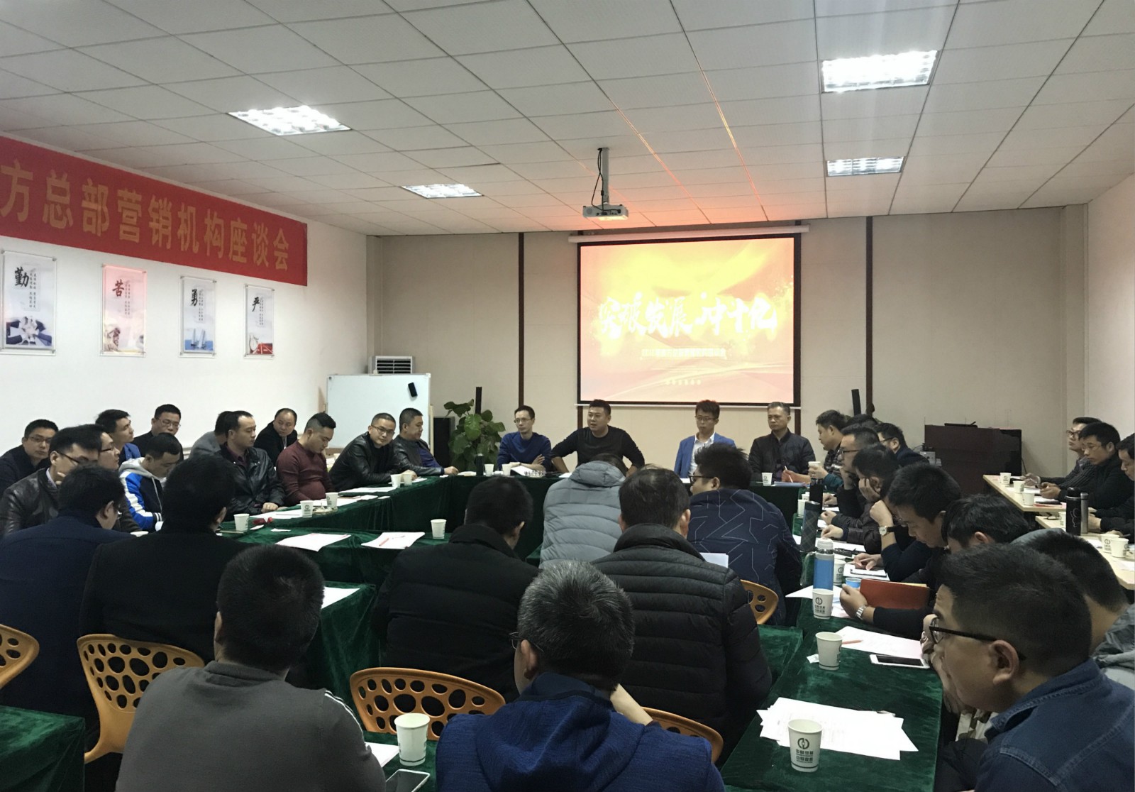 会议最后,陈总强调,我们的会议围绕着行业、市场现状、未来发展趋势进行了一天的讨论,核心的理念一是提升销量,二是提升市场氛围和品牌占有率,三是发展壮大机构。但这些的前提需要大家认清形势,统一思想,统一认识,积极部署,狠抓落实。大家要对自己有信心,对公司有信心,对我们奋斗的平台有信心,希望大家在快速发展的过程中为公司实现百亿销量目标、南方突破十亿目标贡献自己的价值。