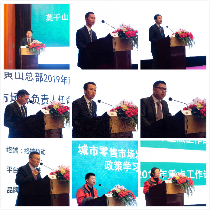 由城市零售市场发展局局长助理俞荣卿先生明确城市零售2019年营销工作方向。俞总提出,城市零售2019年工作主线为“打造体系 聚焦终端”,要求“渠道为王,决胜终端 ;平台专业,内容配合”。要实现渠道突破、终端突破、平台突破、品牌突破、团队突破、管理突破。