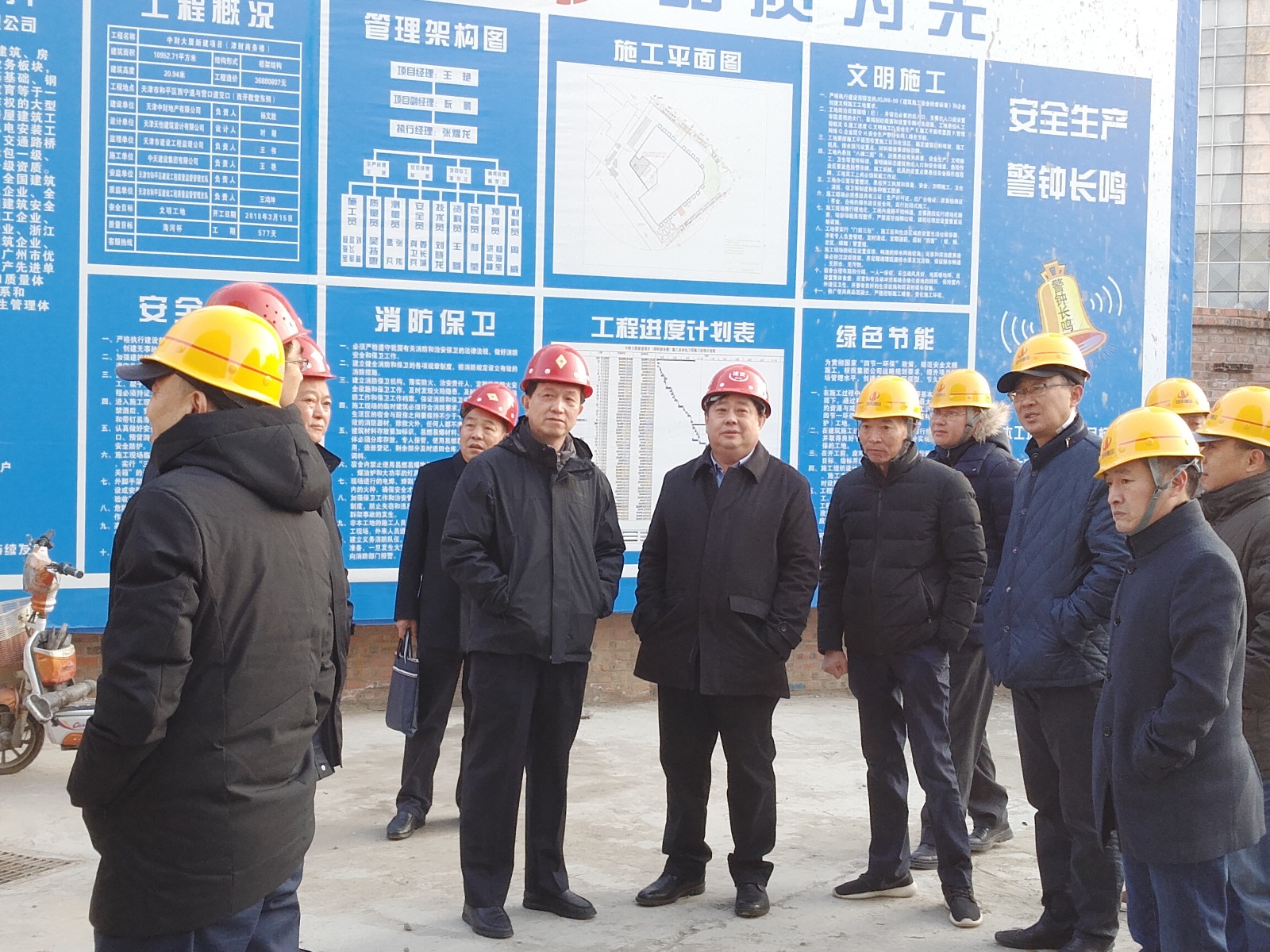天津市委委员、市住建委党委书记、主任宋力威,在和平区副区长王彤陪同下莅临施工现场视察。对施工现场给予肯定,对安全生产、文明施工提出要求。
