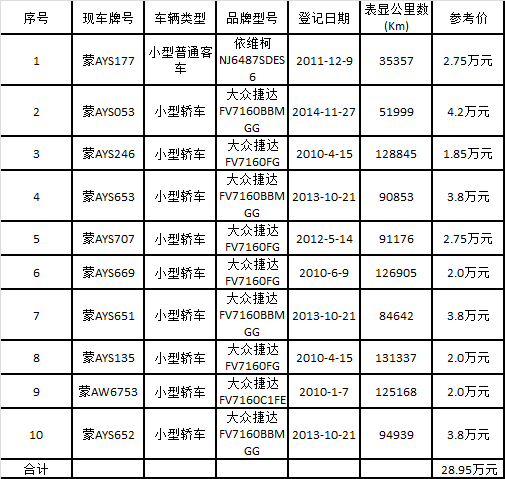 乐鱼网页版登录入口讯 我公司受托将于2019年1月25日上午10时在呼和浩特万达写字楼拍卖厅举办二手车专场拍卖会。1、拍卖标的如下图表所示: