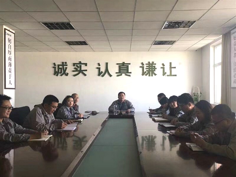 1月17日下午15点30分会议正式开始,首先是文件学习。由公司负责人徐永飞带领与会人员对《化建业2018年度成本费用考核情况通报》、《化建业内务2018年工作总结与2019年工作目标及思路》以及《化建业内务2018年度内务会议纪要》进行了学习。徐总指出,2018年基地成本控制目标和整体经营目标没有完成,2019年各部门工作重点在于成本费用的控制、制度考核的有效落实、质量的管控、以及安全环保问题的应对。一线部门要确保指标的稳定性,把基础工作落到实处,养成良好的工作习惯。