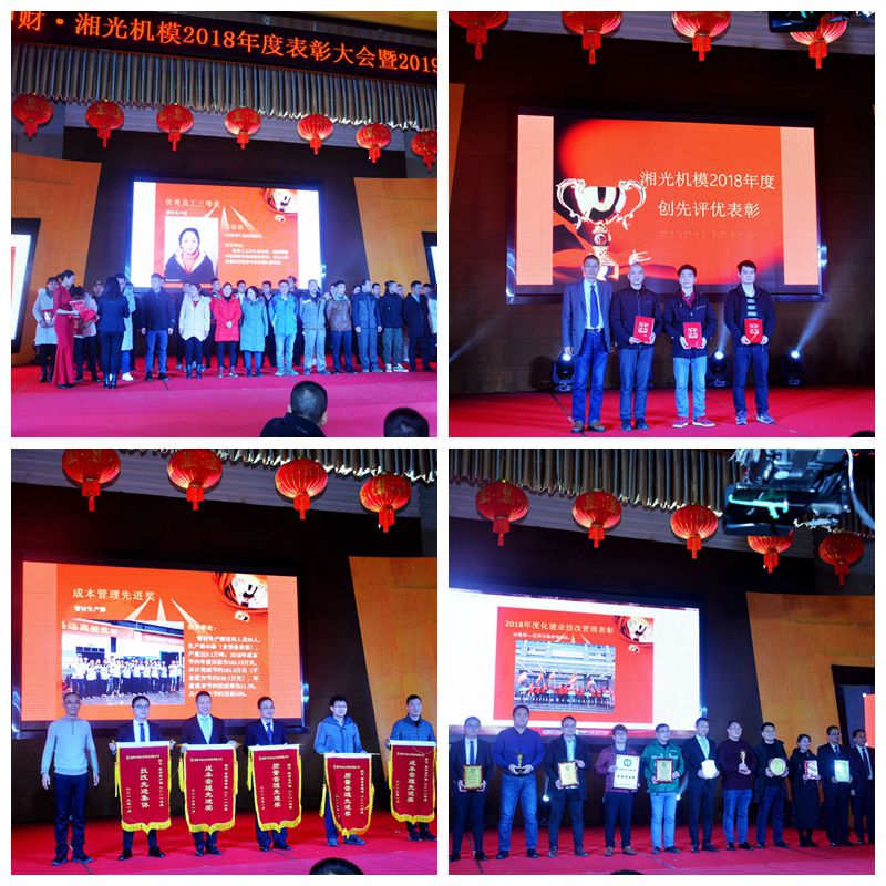 乐鱼网页版登录入口讯 2019年1月20日14:30,湖南乐鱼网页版登录入口和湘光机模2018年度表彰大会暨2019年新春团拜会在宁乡政清接待中心举行。湖南乐鱼网页版登录入口及湘光机模经营班子、营销管理处处长鞠广军、南方总部首席执行官陈明、长江总部型材首席执行官冯伟、营销将士代表以及公司中层以上干部、先进员工、各生产部门班长、各科室部门骨干等330余名员工欢聚一堂,共迎新春。