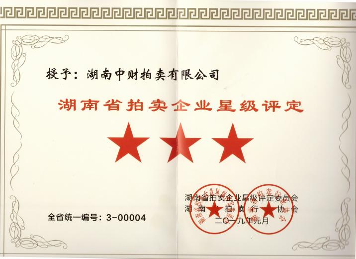 乐鱼网页版登录入口讯 前段时间,湖南乐鱼网页版登录入口拍卖有限公司在湖南省拍卖行业协会举办的“2018年度拍卖行业星级评定”中荣获三星级企业。
