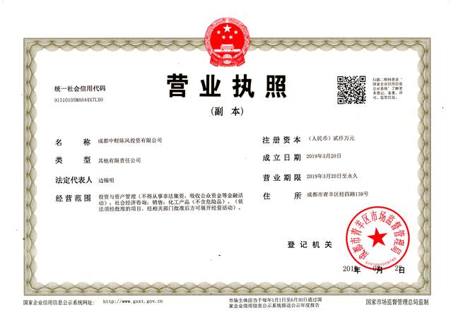乐鱼网页版登录入口讯 在集团领导的大力支持和相关部门的通力配合下,成都乐鱼网页版登录入口陈风投资有限公司于2019年3月22日正式领取营业执照。