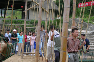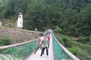 4日中午大家抵达了浙西大峡谷。在品尝了别具风味的农家菜之后,便开始了浙西之旅。大家一路走过了崎岖的山路,经过晃晃悠悠的索桥,笑声和尖叫声满溢了整个峡谷。接着便是刺激的漂流了,皮艇随着溪水此起彼伏。